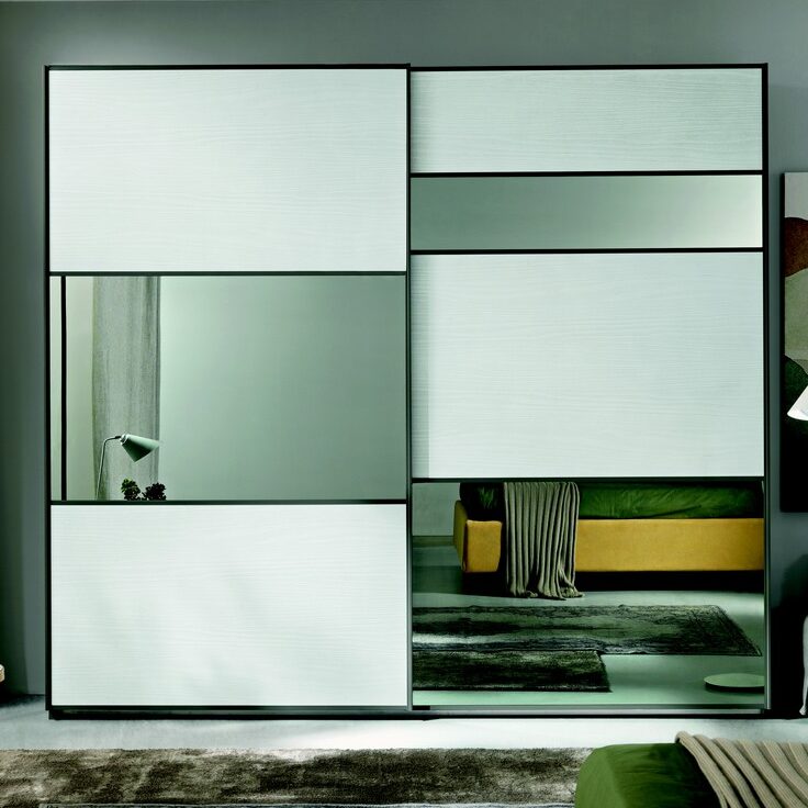 Stupendo armadio della collezione Abaco night – Gierre Mobili, in nobilitato nei colori noce bianco, specchi fumè.