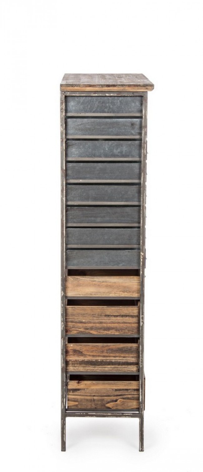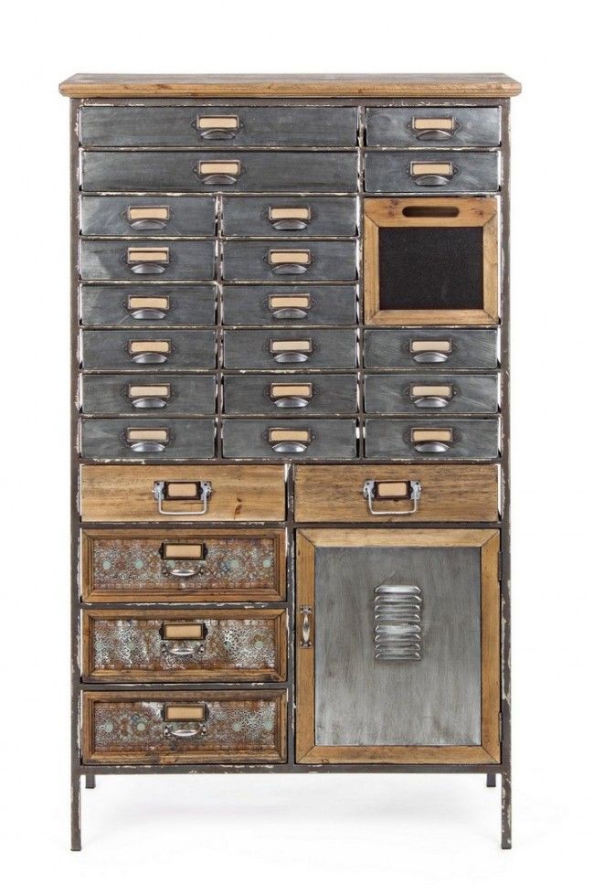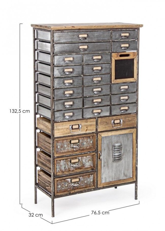 STRUTTURA IN ACCIAIO. CASSETTI IN ACCIAIO, ZINCO E LEGNO DI PINO.