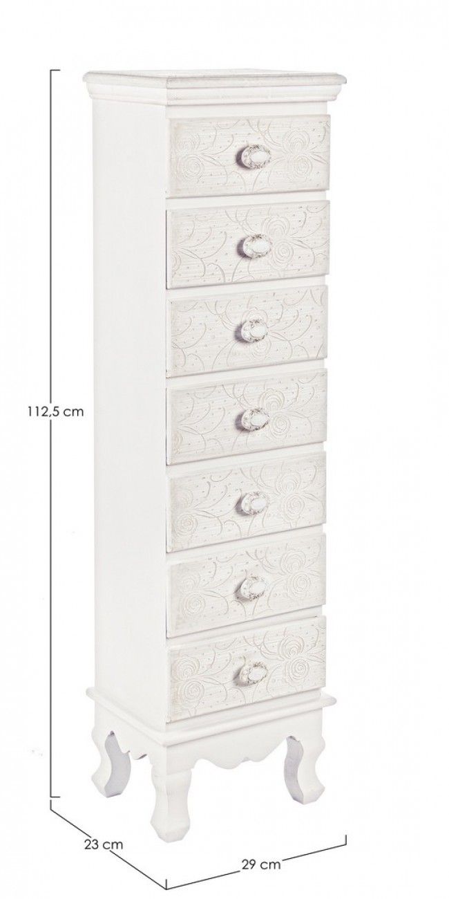 MDF. RIPIANI E FRONTALI CON MOTIVI FLOREALI INTARSIATI. RIFINITURA CON VERNICE OPACA A BASE D’ACQUA. MANIGLIE IN POLIRESINA.
