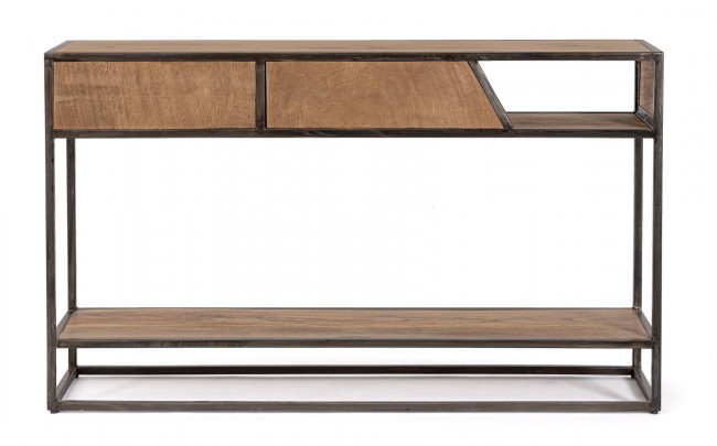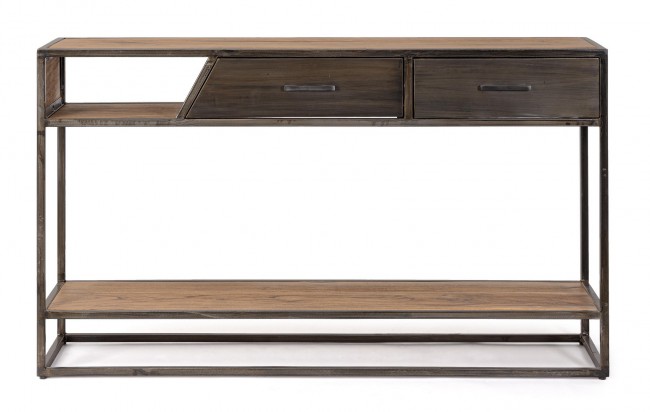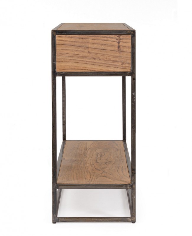 STRUTTURA IN LEGNO D’ACACIA E ACCIAIO VERNICIATO A POLVERE EPOSSIDICA, SCHIENALE IN COMPENSATO. FINITURA ACRILICA PROTETTIVA. CASSETTI E MANIGLIE IN ACCIAIO.