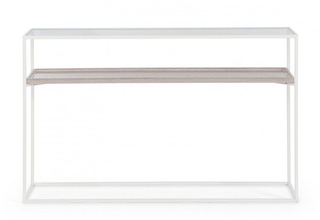 STRUTTURA IN ACCIAIO VERNICIATO A POLVERE EPOSSIDICA. PIANO SUPERIORE IN VETRO TEMPERATO, PIANO INFERIORE IN MDF IMPIALLACCIATO PVC.