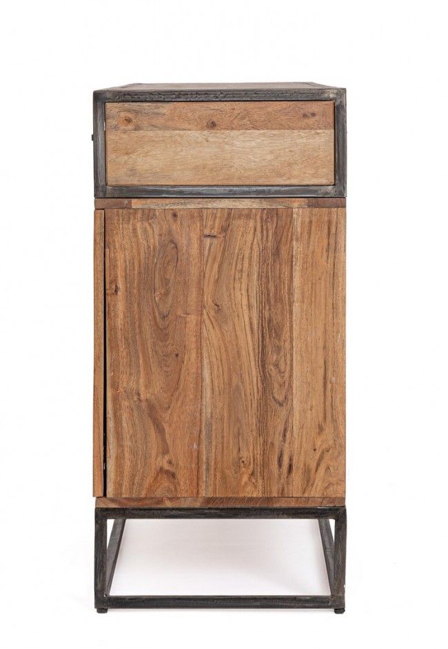 STRUTTURA IN LEGNO D’ACACIA E ACCIAIO VERNICIATO A POLVERE EPOSSIDICA, SCHIENALE IN COMPENSATO. FINITURA ACRILICA PROTETTIVA. CASSETTI E MANIGLIE IN ACCIAIO. VANO PORTA COMPRENSIVO DI MENSOLA.