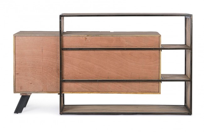 STRUTTURA IN LEGNO MANGO ED ACCIAIO, SCHIENALE IN COMPENSATO. FRONTALE ANTE E CASSETTI IN LEGNO RICICLATO O LAMINA DI ACCIAIO O FINITURA IN FIBRA DI CEMENTO. FINITURA ACRILICA PROTETTIVA. PIEDINI REGOLABILI. IL PRODOTTO IN LEGNO RICICLATO È CARATTERIZZATO DALLA PRESENZA DI TASSELLI IN LEGNO DI DIVERSE SPECIE E COLORE. EVENTUALI FESSURE, CREPE O IMPERFEZIONI, CHE POSSONO GENERARSI ANCHE NEL CORSO DEL TEMPO, SONO CARATTERISTICHE DI QUESTO MATERIALE E RENDONO OGNI PEZZO UNICO E ORIGINALE.