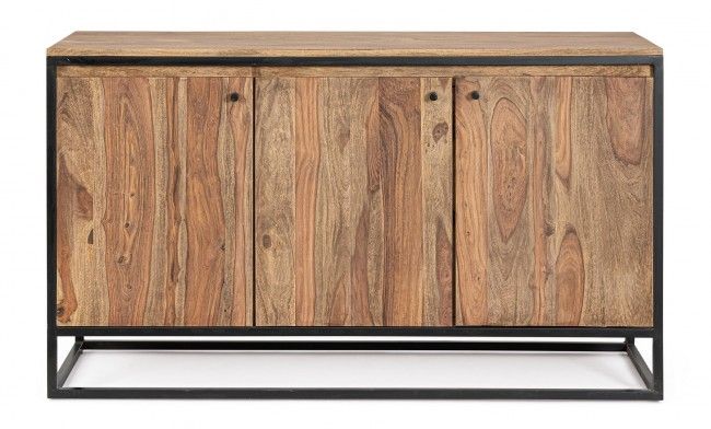 STRUTTURA IN LEGNO SHEESHAM E ACCIAIO VERNICIATO A POLVERE EPOSSIDICA, SCHIENALE IN COMPENSATO. FINITURA ACRILICA PROTETTIVA. MANIGLIE IN ACCIAIO. VANO PORTA COMPRENSIVO DI MENSOLA.