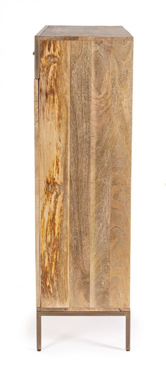 STRUTTURA IN LEGNO DI MANGO E ACCIAIO VERNICIATO A POLVERE EPOSSIDICA, SCHIENALE IN COMPENSATO. FINITURA ACRILICA PROTETTIVA. MANIGLIE IN ACCIAIO. VANO PORTA COMPRENSIVO DI MENSOLA. GAMBE DA ASSEMBLARE.