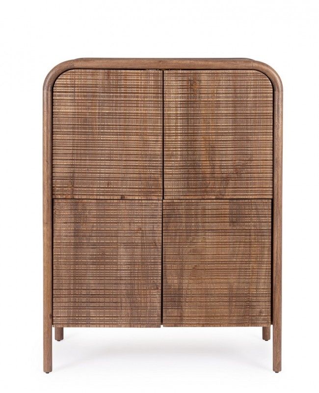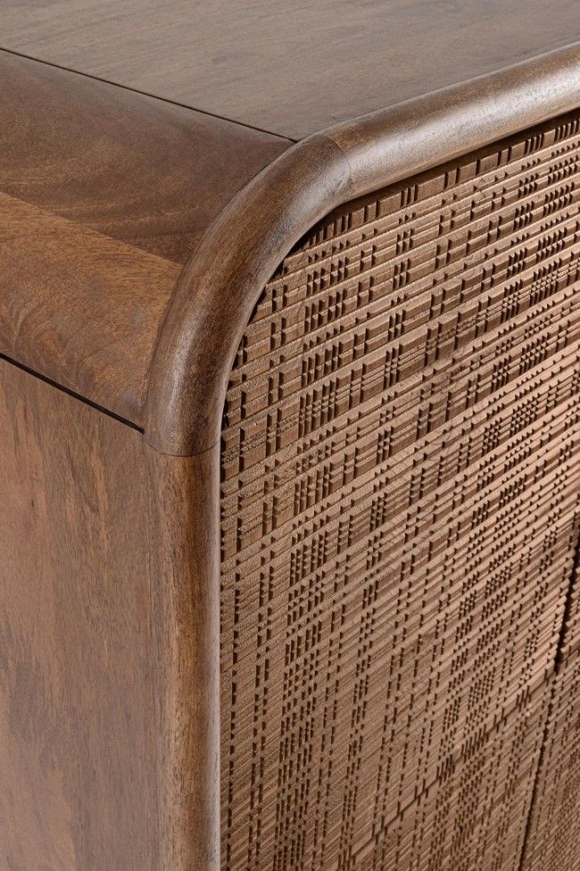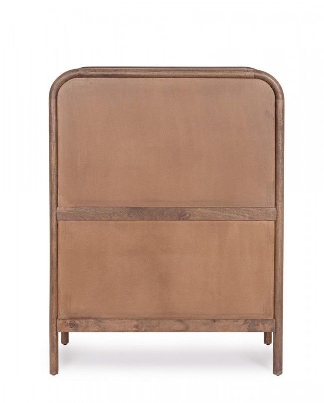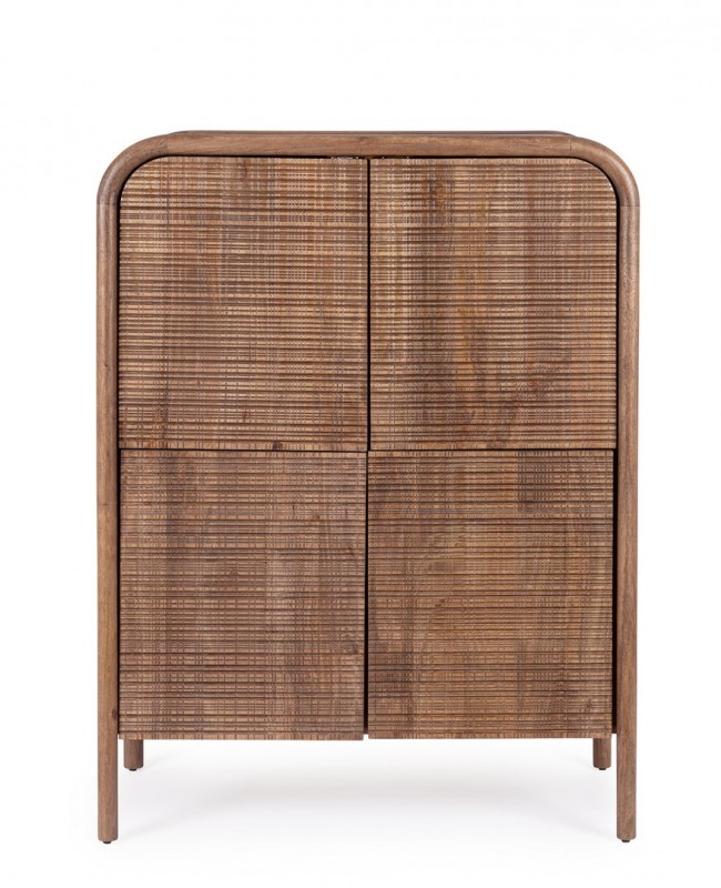 STRUTTURA IN LEGNO DI MANGO, SCHIENALE IN MDF. FRONTALI ANTE INTARSIATI E LAVORATI A MANO. FINITURA CON VERNICE A BASE D’ACQUA. VANO PORTA COMPRENSIVO DI MENSOLA.