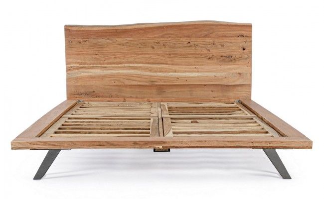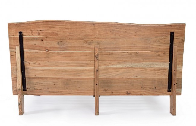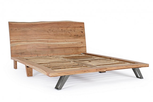 STRUTTURA IN LEGNO DI ACACIA, PIEDINI FRONTALI IN ACCIAIO VERNICIATO A POLVERE EPOSSIDICA. DOGHE IN LEGNO INCLUSE. FINITURA A BASE DI VERNICE POLIURETANICA. TESTIERA CON BORDI IRREGOLARI (EFFETTO LEGNO VIVO). ESSENDO LAVORATO A MANO, LE FORME E LE MISURE DEL LEGNO SONO SOLO INDICATIVE. TUTTI I PRODOTTI SARANNO DIVERSI L’UNO DALL’ALTRO.