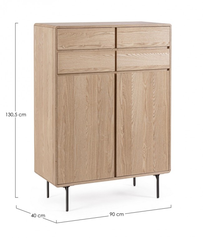 MDF IMPIALLACCIATO LEGNO DI FRASSINO. FINITURA NATURALE CON VERNICE A BASE D’ACQUA. VANO PORTE COMPRENSIVO DI MENSOLA. INTERNO CASSETTI DI COLORE NERO CON GUIDE SCORREVOLI IN ACCIAIO. GAMBE IN ACCIAIO VERNICIATE A POLVERE EPOSSIDICA. GAMBE DA ASSEMBLARE.