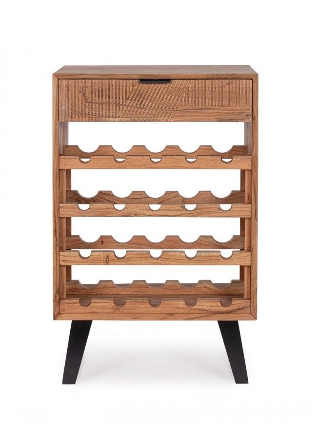 STRUTTURA IN LEGNO DI ACACIA, SCHIENALI E FONDO CASSETTI IN COMPENSATO. FRONTALI CASSETTI INTARSIATI E LAVORATI A MANO. FINITURA ACRILICA PROTETTIVA. MANIGLIE E GAMBE IN ACCIAIO. GAMBE DA ASSEMBLARE.