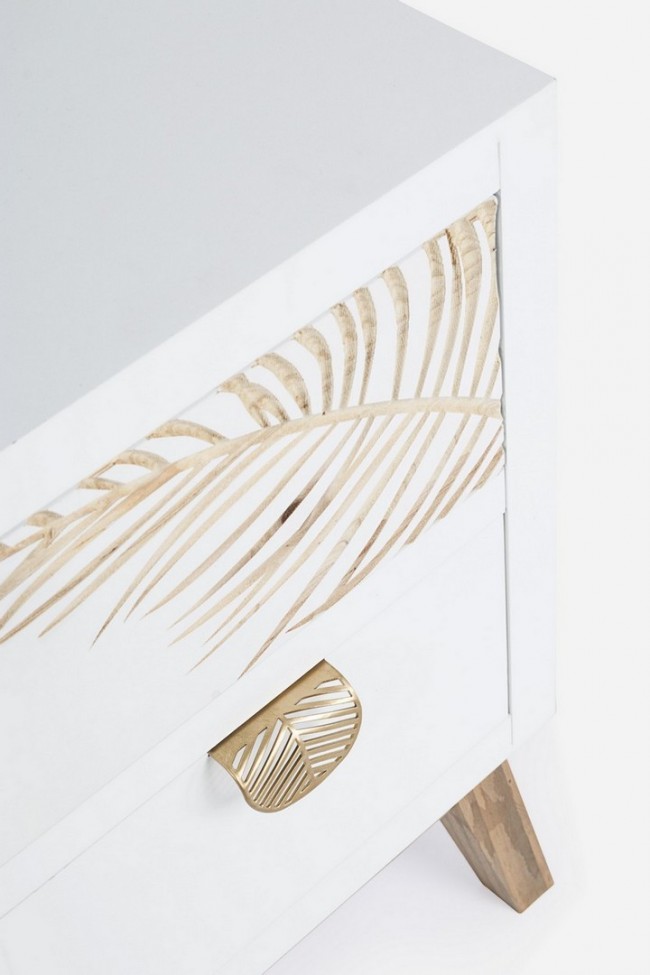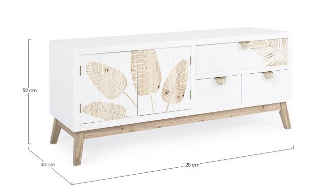 STRUTTURA IN ABETE E MDF, PIANO E SCHIENALE IN MDF. FRONTALE ANTE E CASSETTI IN ABETE (CON DECORO INTARSIATO A MANO) E MDF. FINITURA VERNICE A BASE D’ACQUA. MANIGLIE IN ACCIAIO. GAMBE DA ASSEMBLARE.