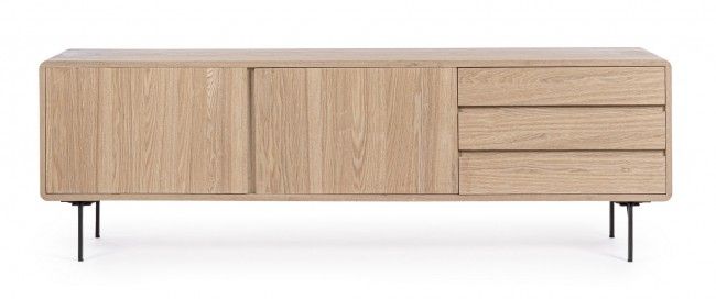 MDF IMPIALLACCIATO LEGNO DI FRASSINO. FINITURA NATURALE CON VERNICE A BASE D’ACQUA. VANO PORTE COMPRENSIVO DI MENSOLA. INTERNO CASSETTI DI COLORE NERO CON GUIDE SCORREVOLI IN ACCIAIO. GAMBE IN ACCIAIO VERNICIATE A POLVERE EPOSSIDICA. GAMBE DA ASSEMBLARE.