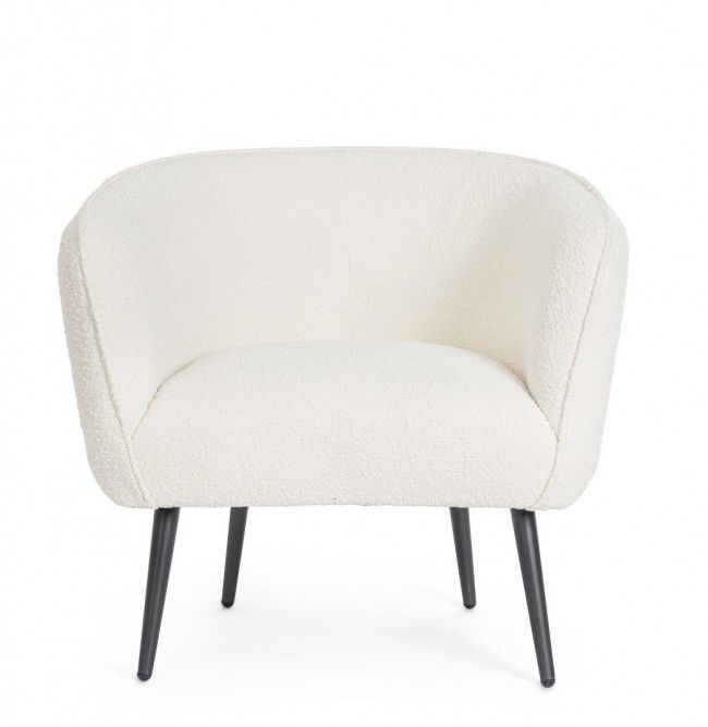 STRUTTURA IN LEGNO COMPENSATO, GAMBE IN ACCIAIO VERNICIATO A POLVERE EPOSSIDICA. RIVESTIMENTO IN POLIESTERE EFFETTO BOUCLE’. DENSITA’ IMBOTTITURA SEDUTA 28KG/M3 SCHIENALE 20KG/M3. NON SFODERABILE. GAMBE DA ASSEMBLARE.