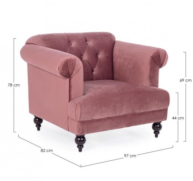 STRUTTURA IN LEGNO COMPENSATO, GAMBE IN RUBBERWOOD. RIVESTIMENTO IN POLIESTERE EFFETTO VELLUTO. DENSITA’ IMBOTTITURA SEDUTA 28KG/M3 SCHIENALE 20KG/M3 . NON SFODERABILE. GAMBE DA ASSEMBLARE.