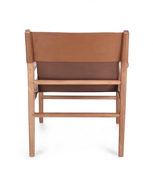 LEGNO TEAK, FINITURA CON VERNICE A BASE D’ACQUA. SEDUTA E SCHIENALE RIVESTITI IN VERA PELLE (PIENO FIORE).