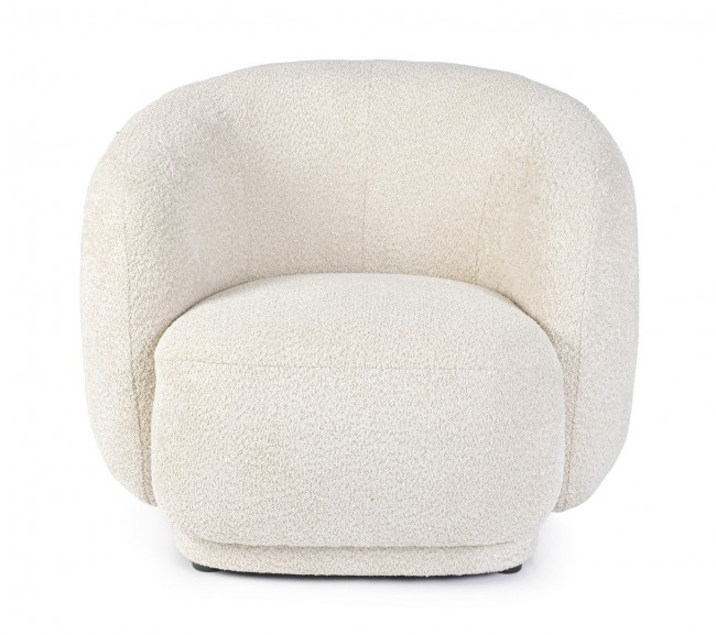 STRUTTURA IN COMPENSATO. RIVESTIMENTO IN POLIESTERE EFFETTO BOUCLE’. IMBOTTITURA IN SCHIUMA POLIURETANICA (DENSITA’ 25KG/M3 SEDUTA, 18KG/M3 SCHIENALE).