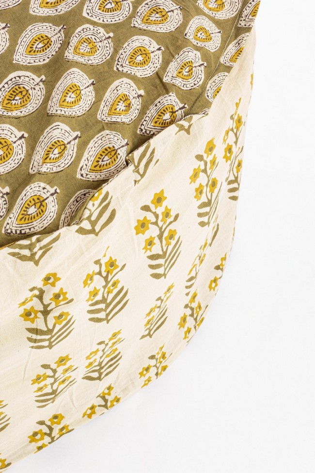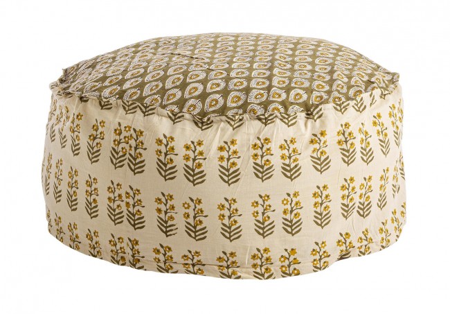 POUF REIMS AVORIO C-FOGLIA-FIORE D65X25H