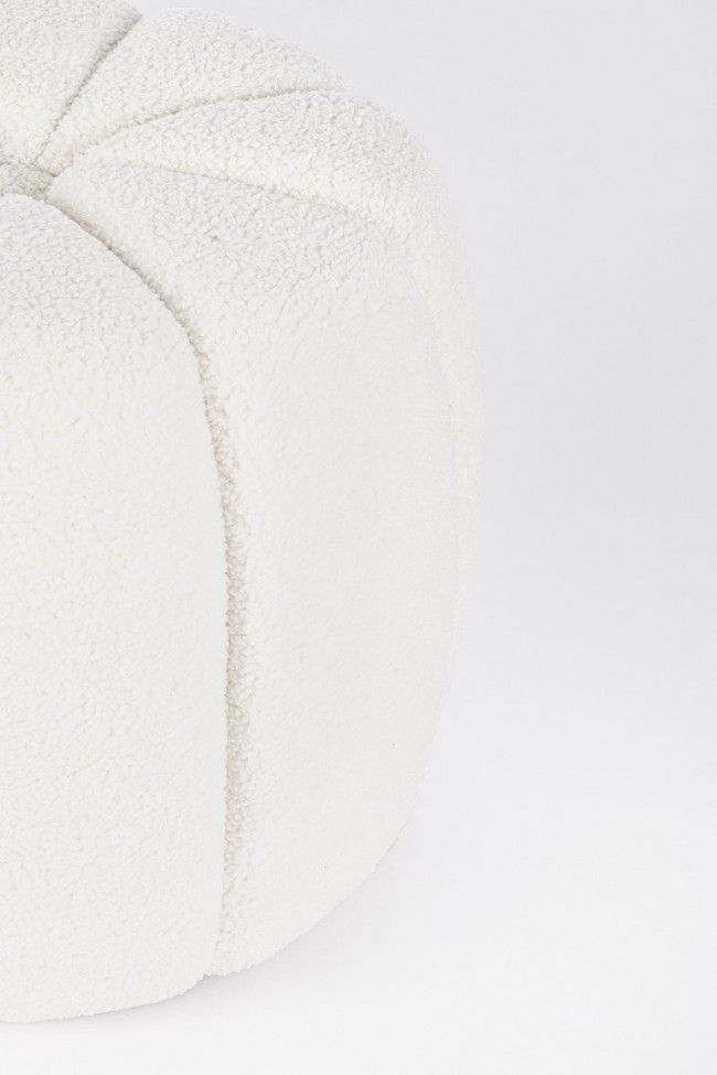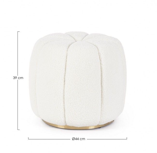 STRUTTURA IN MDF E COMPENSATO. RIVESTIMENTO IN POLIESTERE EFFETTO LANA. DENSITA’ IMBOTTITURA 30KG/M3. ANELLO DECORATIVO INFERIORE IN ACCIAIO VERNICIATO COLOR ORO.