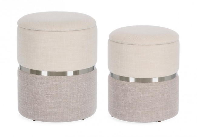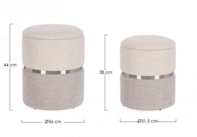 STRUTTURA IN MDF E COMPENSATO. RIVESTIMENTO IN POLIESTERE. DENSITA’ IMBOTTITURA 30KG/M3. ANELLO DECORATIVO IN ACCIAIO VERNICIATO COLOR ARGENTO.