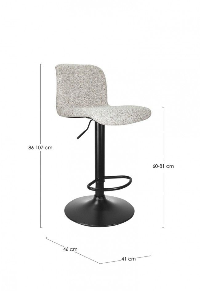 STRUTTURA IN ACCIAIO VERNICIATO A POLVERE EPOSSIDICA. IMBOTTITURA IN SCHIUMA POLIURETANICA DENSITA’ 24KG/M3, RIVESTIMENTO IN POLIESTERE. BASE DIAM.41MM. REGOLAZIONE DELL’ALTEZZA CON SISTEMA A GAS. BASE DA ASSEMBLARE.