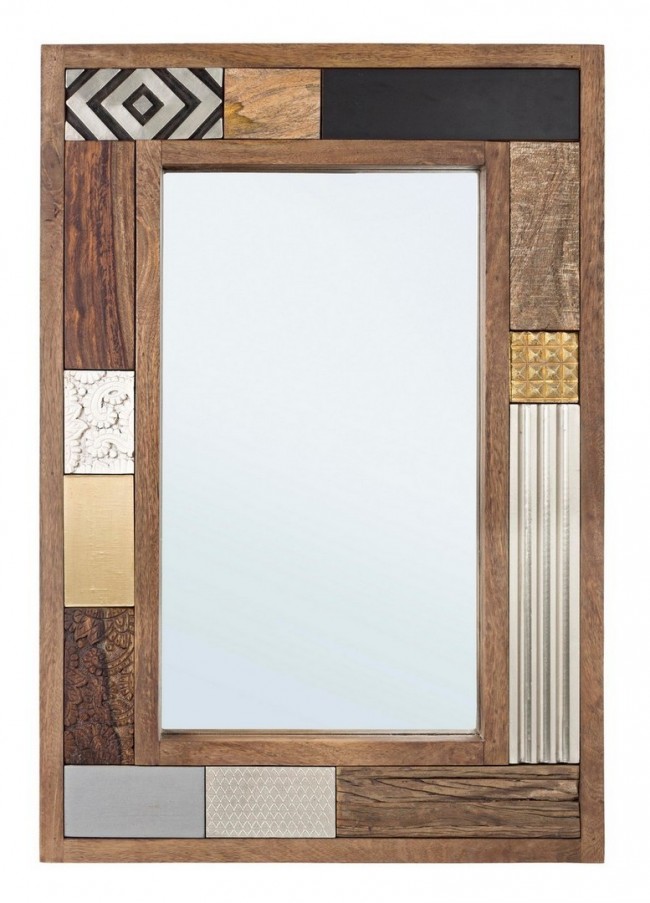 STRUTTURA IN LEGNO RICICICLATO DI MANGO ED ACACIA, SCHIENALE IN MDF. POSIZIONABILE IN VERTICALE /ORIZZONTALE. MISURA SPECCHIO: 70X40